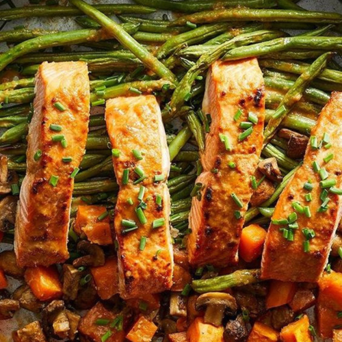 4. Ginger-Tahini Oven-Baked Salmon & Vegetables