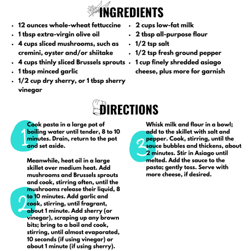 5. Creamy Fettuccine with Brussel Sprouts & Mushrooms